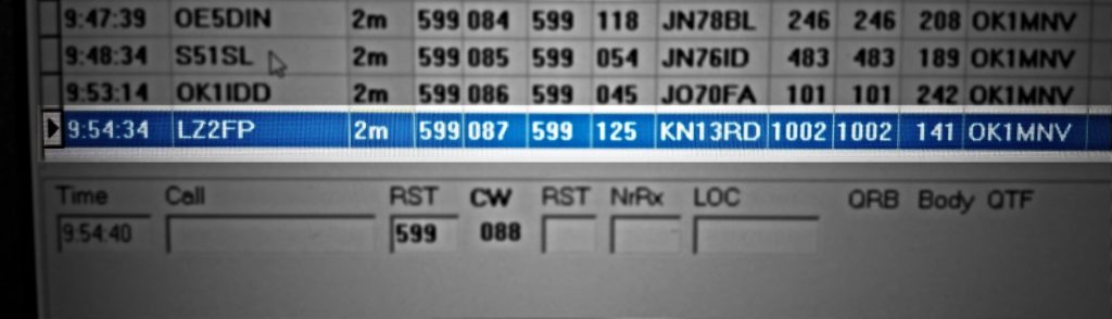Zápis ODX spojení s LZ2FP 1002 km