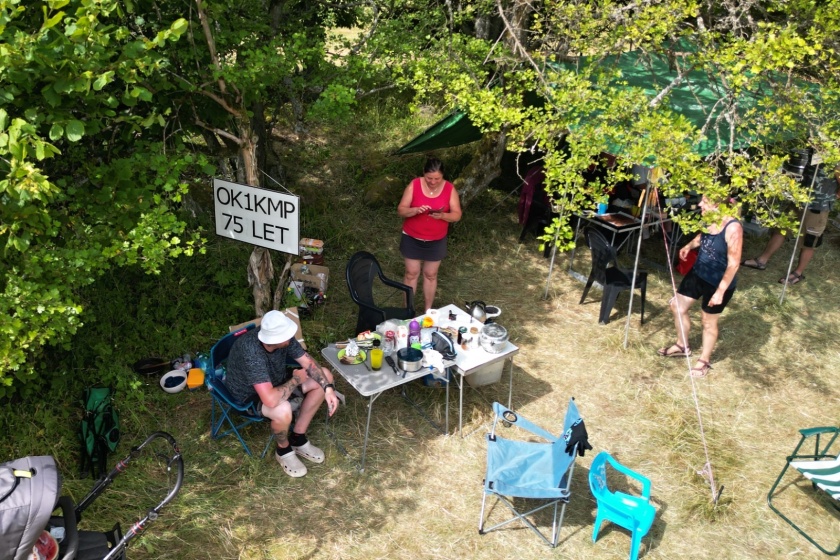 Soutěže VKV Polní den 2025 a Polní den mládeže 2025 probíhaly jako obvykle z kóty Kozinec 608 m n. m. v JO70SM ve dnech 5. a 6. července 2025. Souběžně proběhlo i červencové kolo SSB ligy. Mikuláš přebírá pohár za Výsledky v PDM 2024. Předává Vláďa OK1FUJ Karolínka přebírá pohár za Výsledky v PDM 2024. Petr OK1AKI a Vláďa OK1FUJ David a Petr OK1AKI s pohárem za Výsledky v PDM 2024. Náš závodní dorost Společné foto členů RK Poslední chvíle klidu před hlavním závodem. Anička, Lenka, Martin, Vláda OK1FUJ, David, Štěpánka a Martin OK1TKN Pohled z Kozince na dostavbu Novopackého obchvatu Pohoda klídek. Anička, Lenka a Martin Deník se začíná zaplňovat Podvečerní idyla Petr OK1AKI zaučuje budoucího operátora Maxe Nedělní ráno jako vymalované Pohled shora Dron nám poskytl zcela neznámé pohledy Martin OK1TKN bavil nejmladší Petr OK1AKI u nového zařízení pro 10 GHz Provozní teplota ve vysílacím stanu Okolní vegetace nás rychle dorůstá Společné foto z nové perspektivy Detail zařízení na 10 GHz Pod zařízením na 10 GHz nám roste nový operátor Honza OK1MNV ve chvilce oddechu mezi dalšími spojeními Roman OK1NPF při závodě Vzácný okamžik. U mikrofonu Vláďa OK1FUJ Pracoviště pro 144 MHz chvíli před koncem Celkový pohled na společenskou místnost“ Nedělní oběd se blíží. Vítek, Štěpánka a Anička Anička chytá bronz Vítek se raději uchýlil do stínu Po obědě patří ovoce. Karolínka « ‹ z 3 › »
